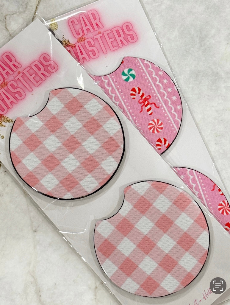 Pink Gingham Car Coasters