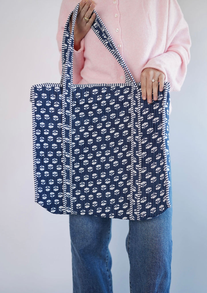 Navy Floral Tote