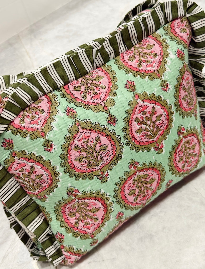 Green Floral Cosmetic Bag
