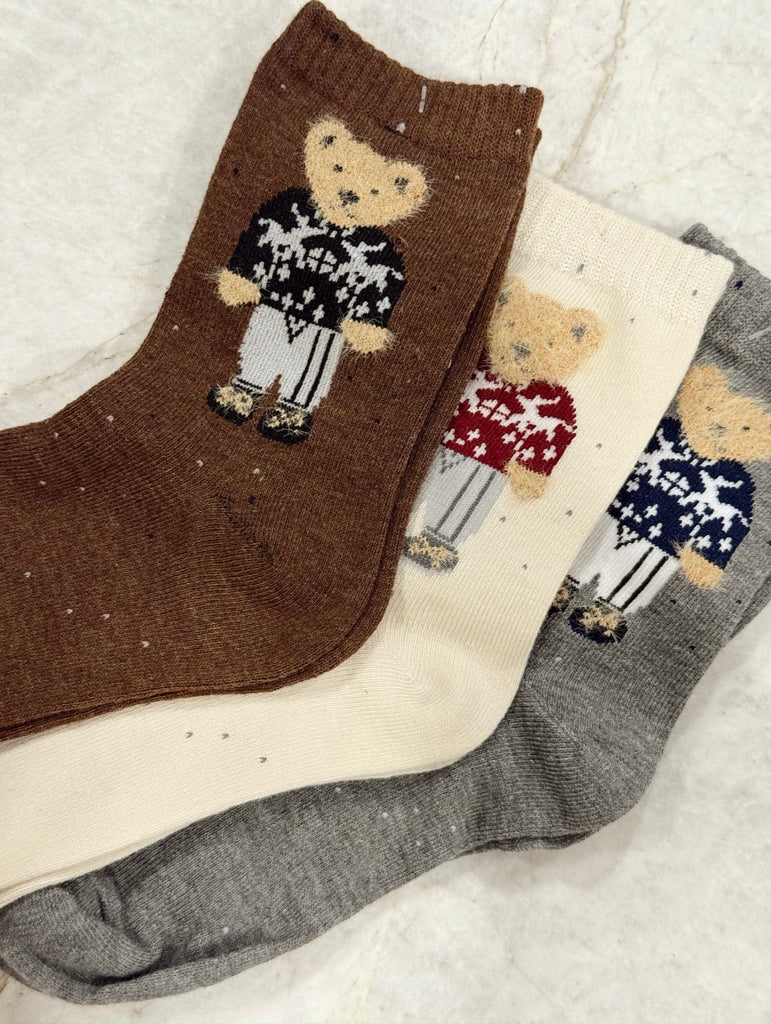 Christmas Teddy Socks - Gray