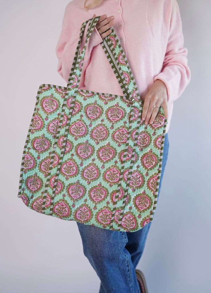 Green Floral Tote