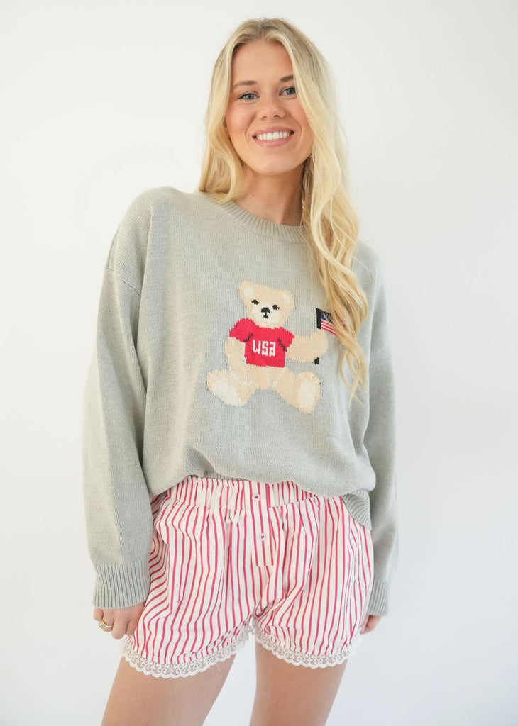 Phoebe Shorts - These shorts are so cute and in style! Its cinching around the legs makes these shorts so unique! Its pin stripe detailing and lace borders make these shorts a must have! Get your Phoebe shorts today!