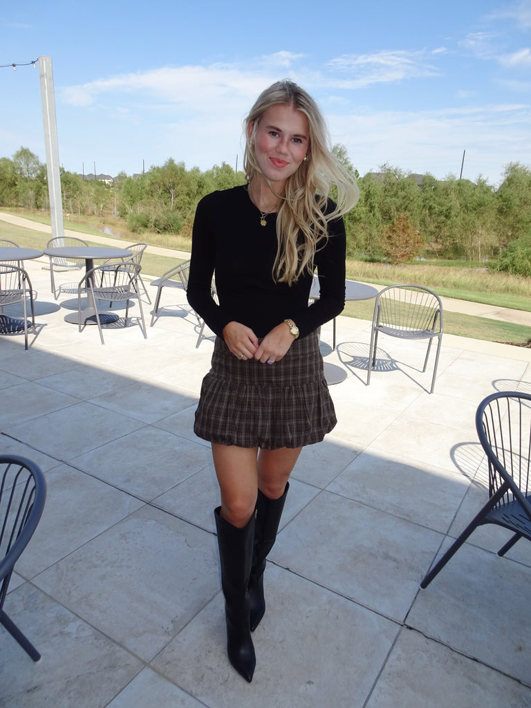 Reese Plaid Skirt - This plaid mini skirt is absolutely adorable and perfect for the season! We love the pattern and bubble detailing, making this the perfect mini skirt! This skirt has built in shorts underneath and a zipper on the side.