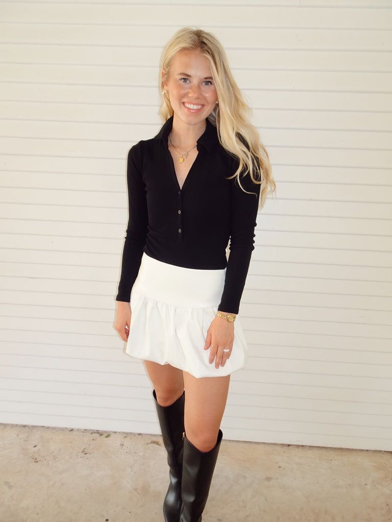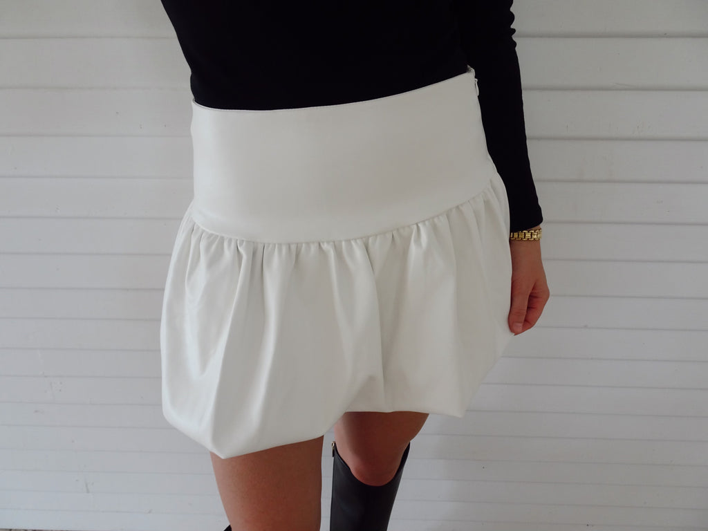 Scarlett Bubble Skirt - This pleather white skirt is absolutely adorable and one of our favorites! We think this skirt is perfect for any season and would be so cute styled with boots or sneakers! Don't miss out on this one!