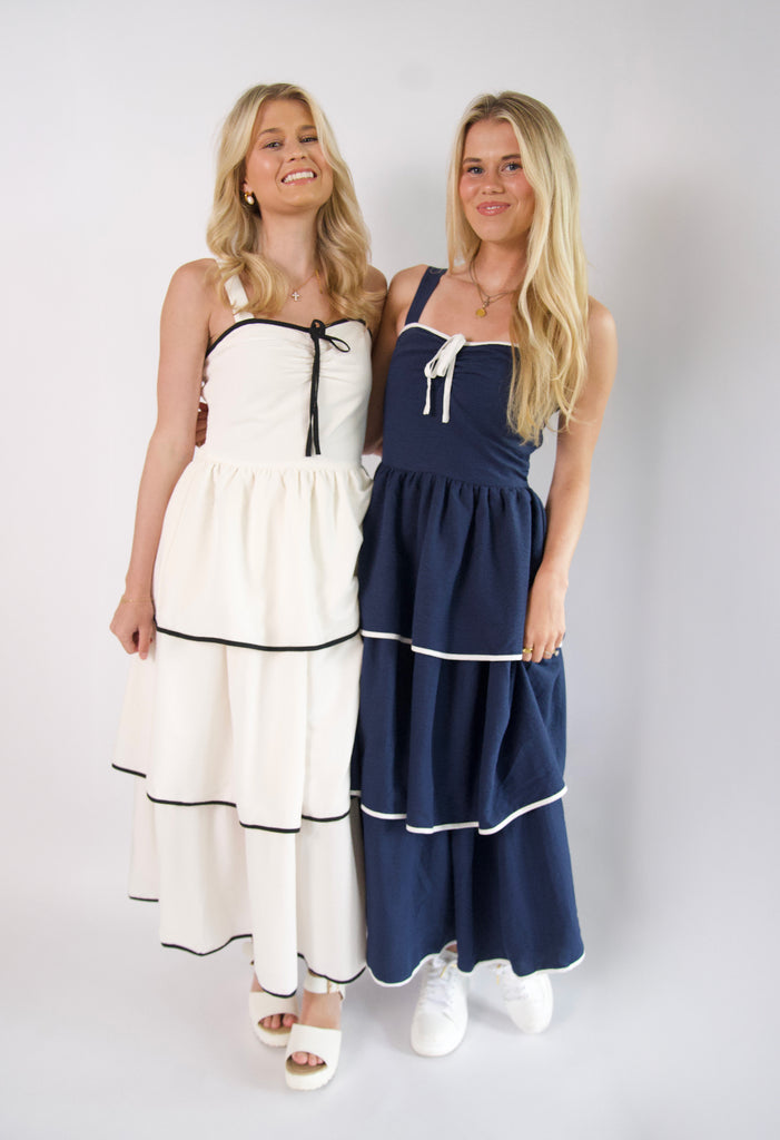 Amy Tiered Maxi Dress - This dress is so cute and flattering! Its tiered detailing and black borders make this dress so unique! Wear this dress to church, brunch with friends, or a beach dinner. Its perfect for any occasion! Get your Amy tiered maxi dress today!