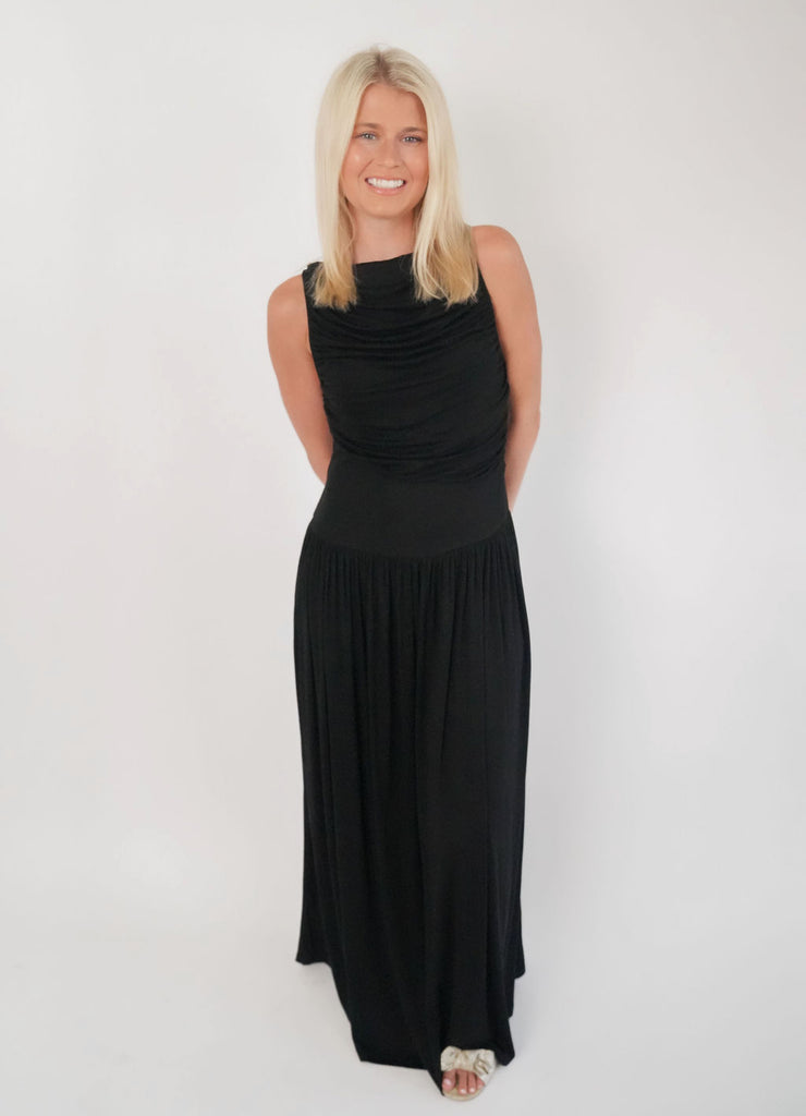 Autumn Maxi Dress - This drop waist maxi dress is so cute! Its cinched, off the shoulder detailing makes this dress so unique! This dress is lined. Wear this dress with heels, sandals, or any shoe of choice! Get your Autumn maxi dress today!