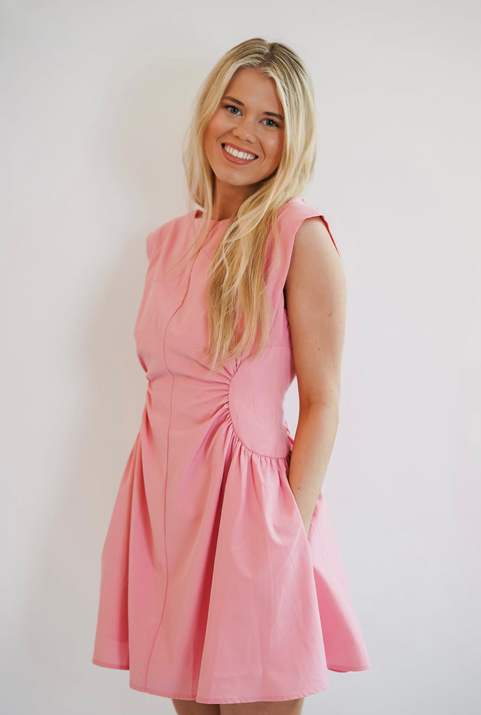 Delaney Mini Dress - This candy pink dress is absolutely stunning! Its cinched waist makes this dress so unique. This dress is complete doubled lined. Wear it with sandals, sneakers, or heels. Whether you need a new dress for an upcoming dinner or even graduation, this outfit is perfect for you. Make the Delaney mini dress apart of your closet today!
