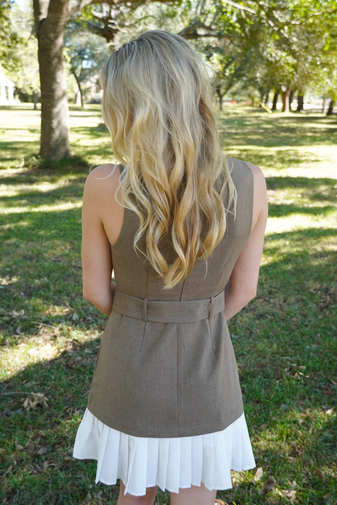 Ivy Belt Dress - The Mocha Ivy Belted Dress is so flattering and is perfect for any occasion! It has the most adorable pleated bottom and belt detailing! It is one of our favorites, and we can't wait for you to shop this dress! This dress also has a back zipper.