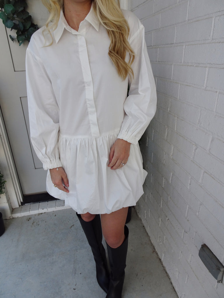 Jordyn Button Up Bubble Dress - This long sleeve button up bubble dress is so cute! We think it is perfect for so many occasions and would be great paired with sneakers, boots, or heels! Add the Jordyn Dress to your closet today!