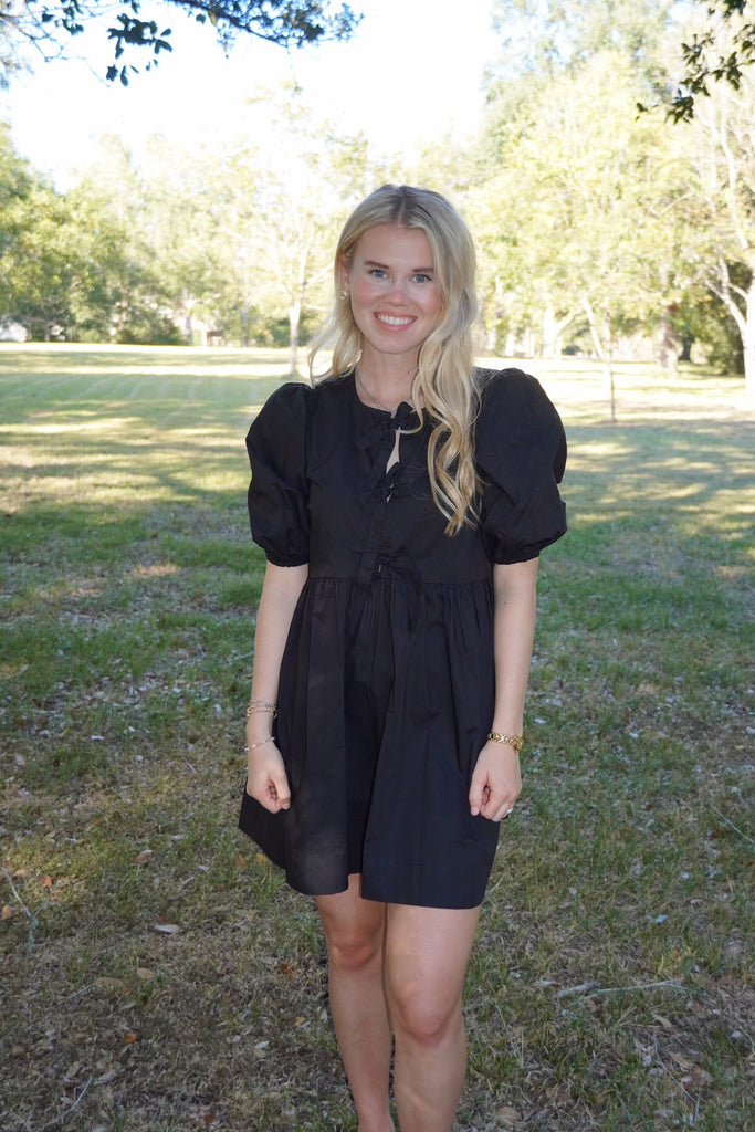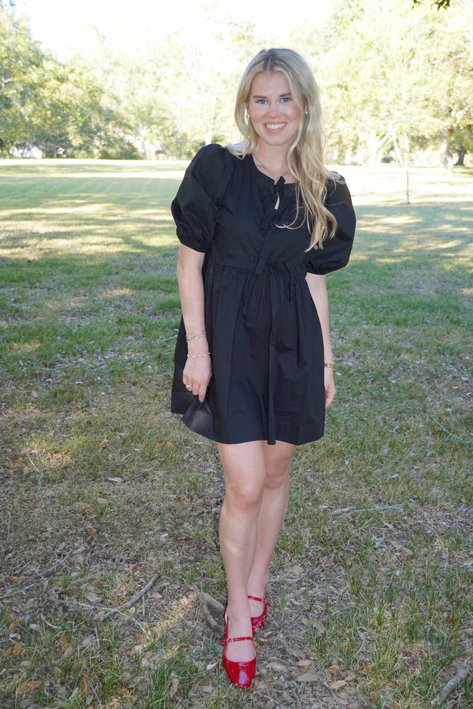 Lucy Dress - The Lucy Dress is adorable and can be worn for many different occasions! It has the cutest puff sleeve and bow tie detailing. This dress can be dressed up or down with heels, boots, or sneakers! Get your Lucy dress today!