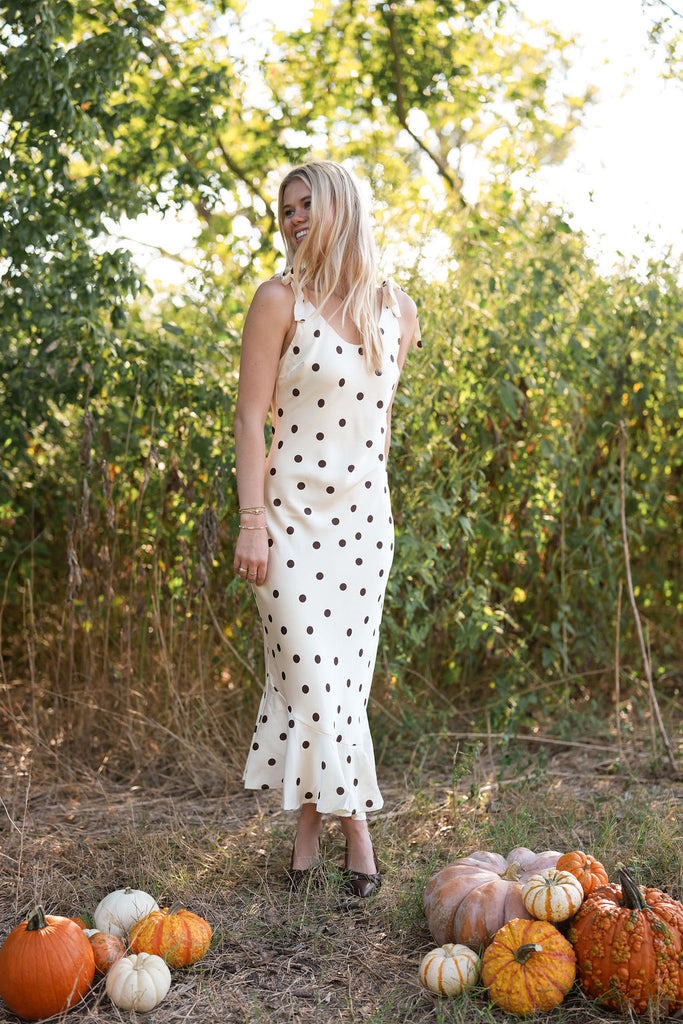Mallory Maxi Dress - Elegant and effortlessly feminine - the Mallory Maxxie Dress is a fan favorite you'll fall in love with. Featuring a silky-smooth texture and playful polka dots, this fully lined dress is perfect for dressing up or down. Pair it with heels, sandals, or your go-to flats for a stunning look every time!