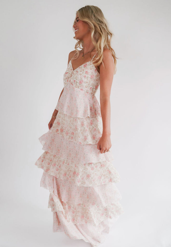 Millie Tiered Maxi Dress - A standout favorite for a reason! With soft floral tiers and a flattering scrunched midline, the Millie brings effortless elegance to any occasion. Perfect with heels, wedges, or sandals - this dress was made to turn heads.