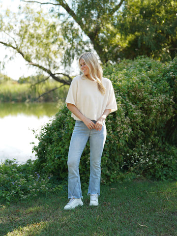 Emma Cardigan Top - Designed in a timeless cream knit, the Emma Cardigan Top blends cozy comfort with effortless style. Its midline button detail and sleek, minimalist design make it easy to dress up or wear casually, while its versatile neutral tone pairs seamlessly with just about everything in your closet. Soft, stylish, and endlessly wearable— you'll find yourself reaching for the Emma Cardigan Top again and again.