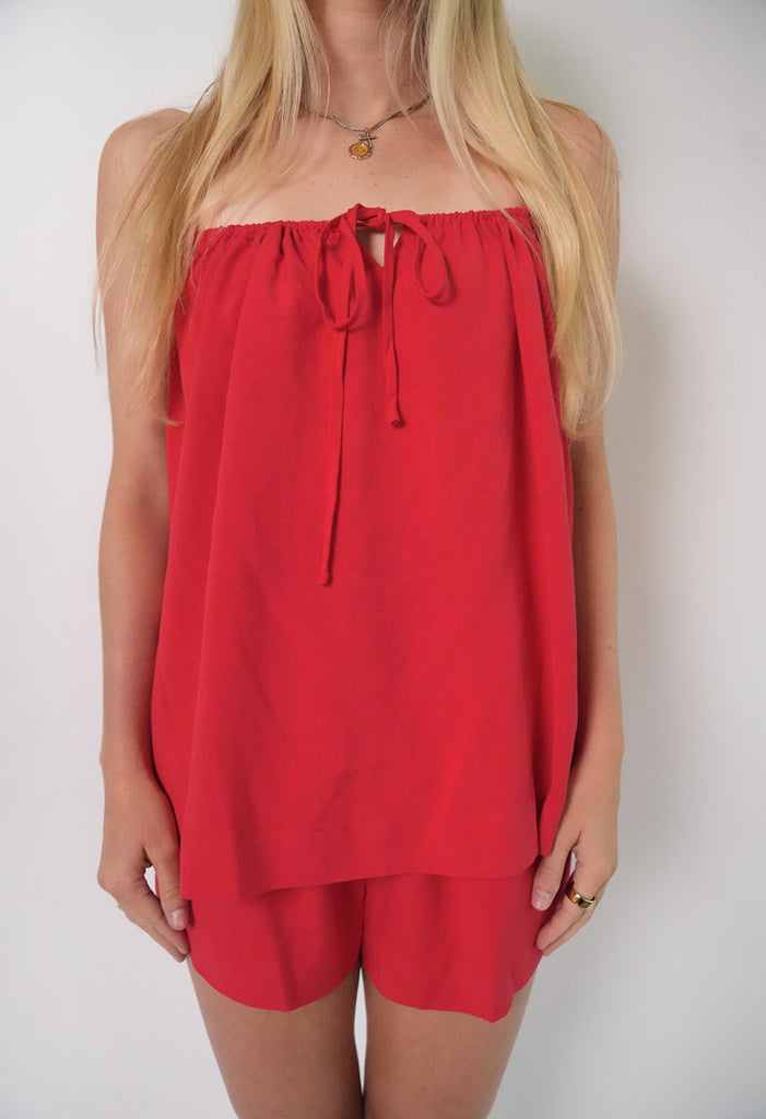 Alexa Set - This red set is an owner favorite! It is so cute and comfortable! Its cinched neckline and tie shorts make this the most perfect outfit! The shorts are lined. Wear this with sandals, sneakers, or any shoe of choice! Get your Alexa set today before its too late!