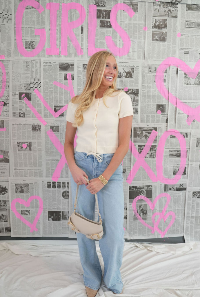 Elaine Cardigan - This ivory, short sleeve cardigan is so cute and perfect for the upcoming season! Its midline button and soft material makes this top a must have! Wear with jeans, shorts, or any bottom of choice! Get your Elaine cardigan today!