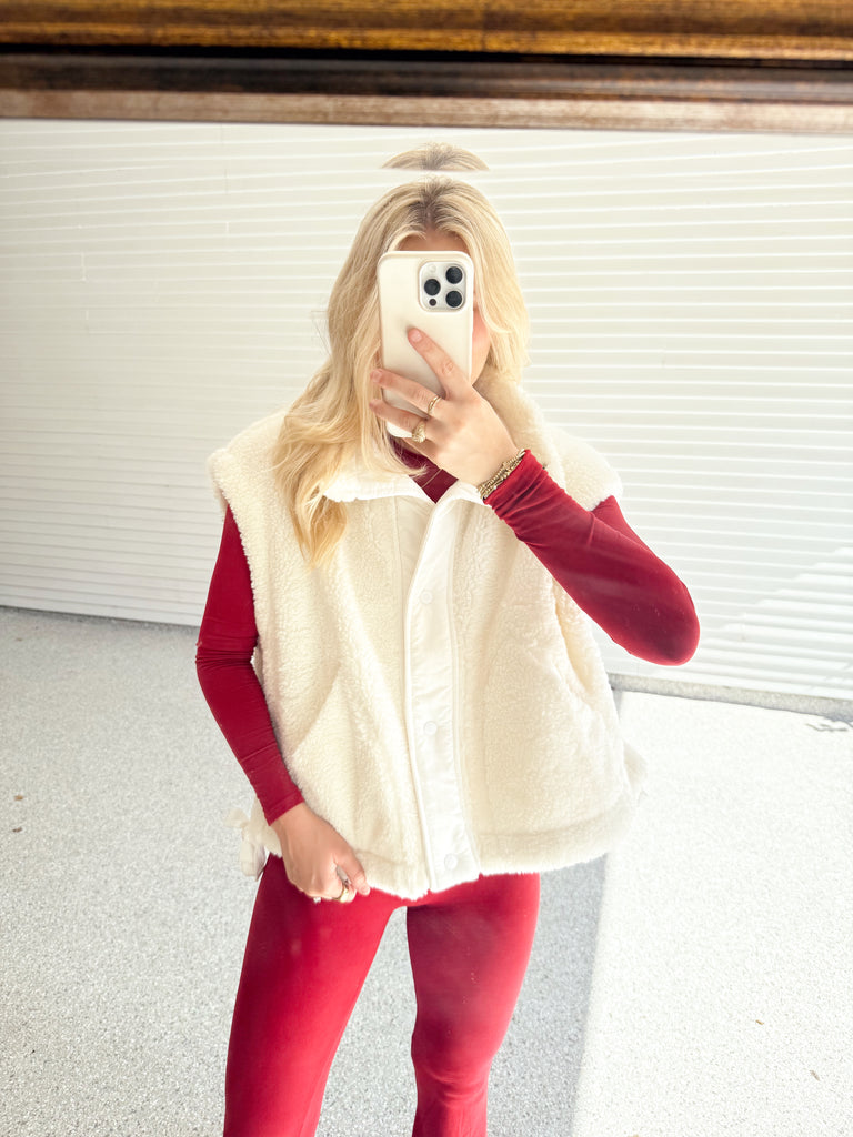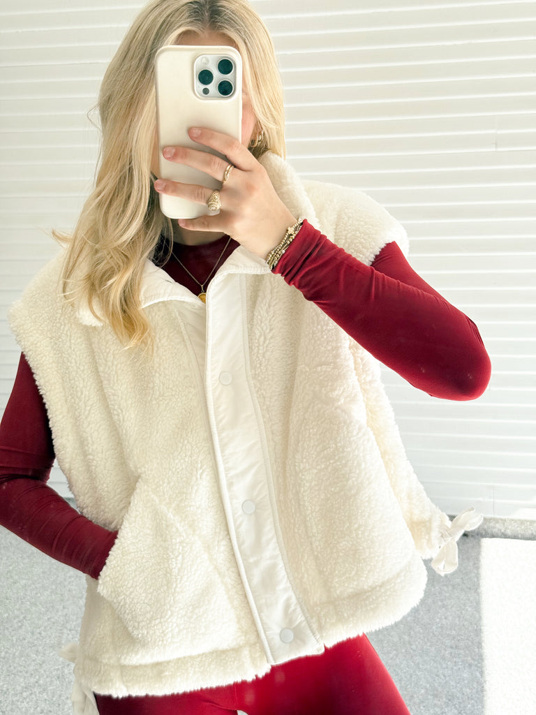 Hillarie Cream Vest - Soft hues and subtle details make the Hillarie Cream Vest a wardrobe favorite. With its two-tone cream and white design, button-front silhouette, and dainty side bows, it’s an easy layer over the Joyful Is She Dylan Set or any casual look!
