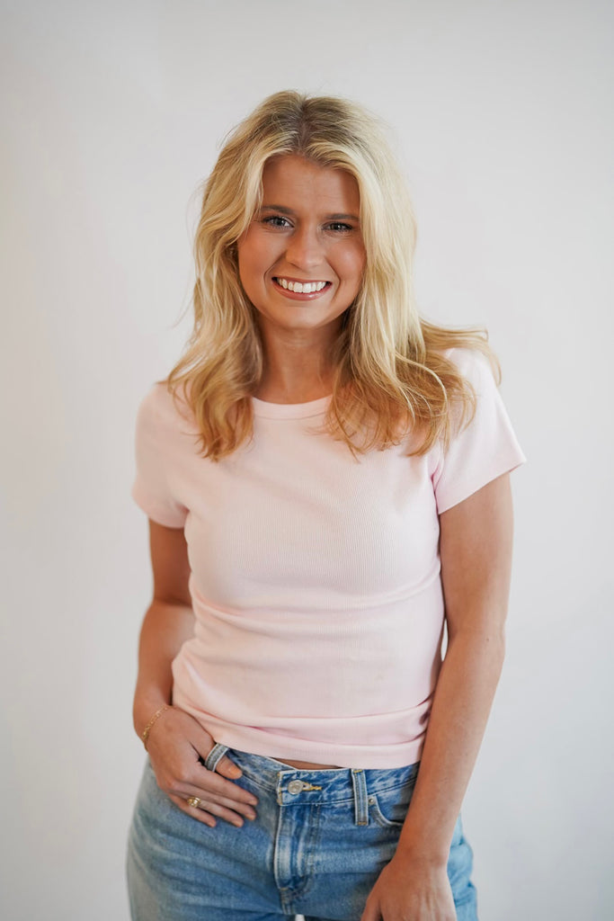 Kristin Basic Top - This baby pink top is the most perfect basic. Its ribbed material and soft quality make this top different from others. Wear this top with jeans, shorts, or a skirt. Get your Kristin Basic Top today!