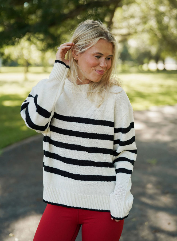 Zoe Striped Top - This top is so comfortable and perfect for the upcoming season! Its striped detailing and ribbed border makes this top different from others! Wear this top with jeans, a skirt, or any bottom of choice! Get your Zoe striped top today!